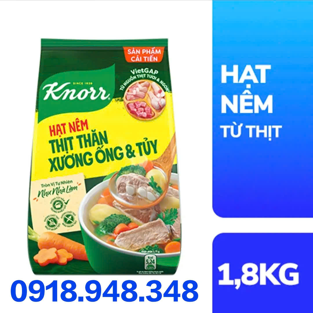 Hạt Nêm Từ Thịt Knorr 1.8kg. Làm từ Thịt Thăn, Xương Ống và Tủy. cho các món ăn thơm ngon “tròn vị” cho món ăn thêm thơm ngon bổ dưỡng.